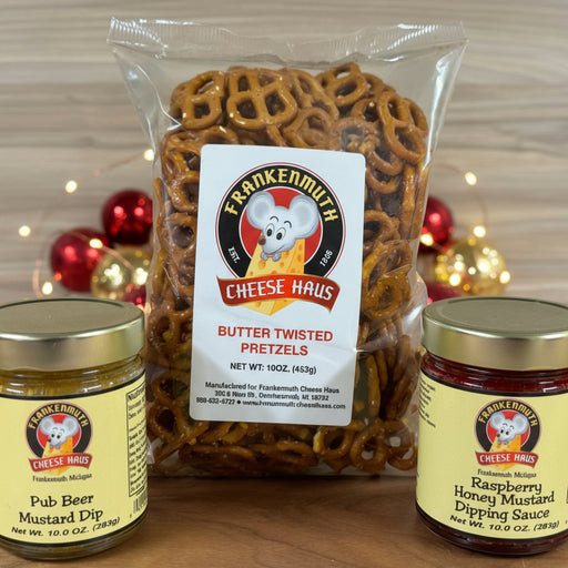 The grab-and-go crowd-pleaser. Packed in our insulated Cheese Haus cooler, this bundle pairs buttery pretzels with bold, creamy spreads—plus a slic...