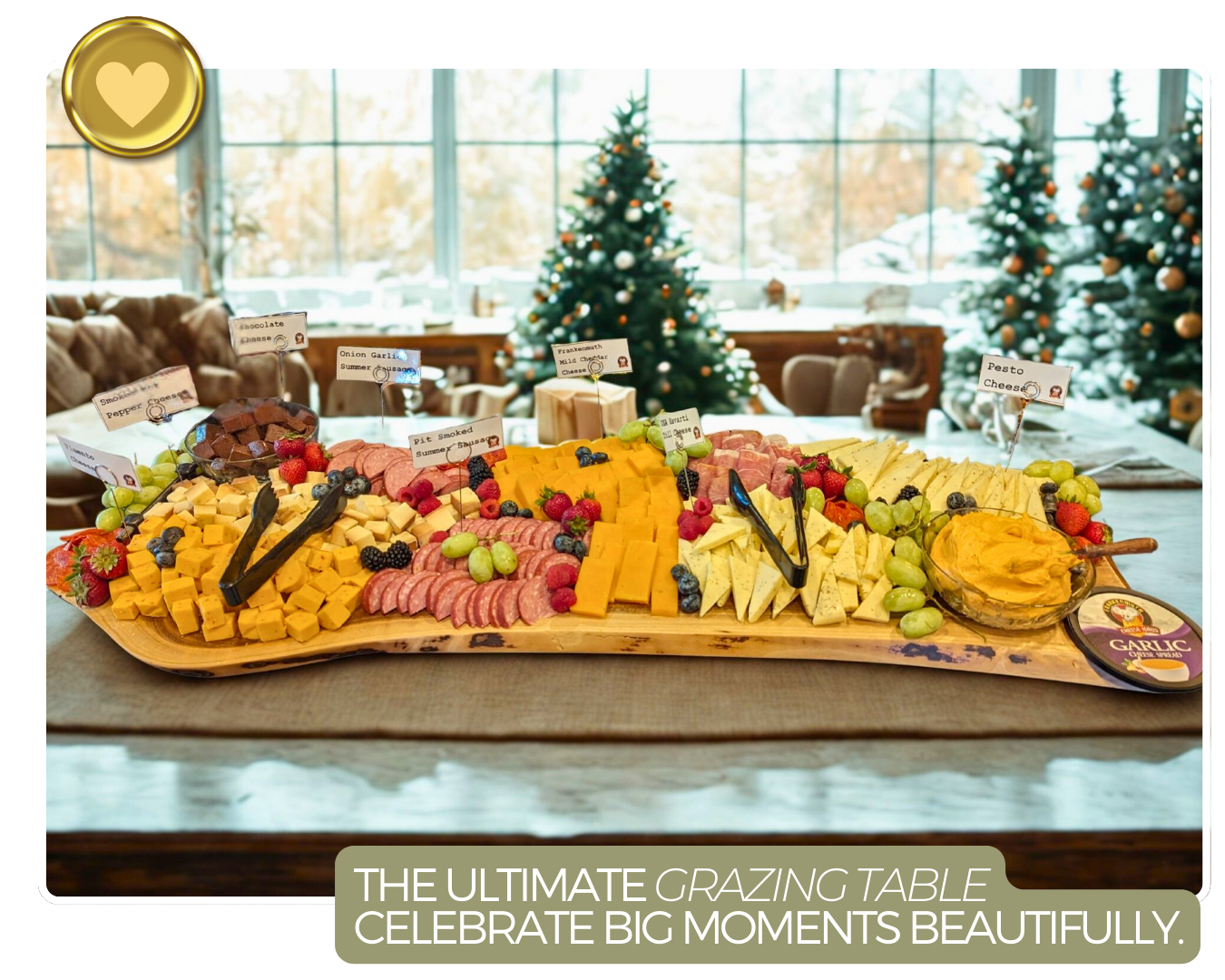 Includes made-in-haus Cheese Haus Garlic, Horseradish & Jalapeño Cheese Spreads, Frankenmuth Mild Cheddar, Holland Smoked Gouda, Butter Pretzels, Cabaret Crackers,